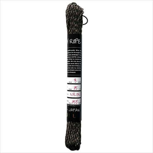 幅約3mmのロープは束ねてもかさばりにくく、持ち運びに便利です。引張強度は約150kgfです。