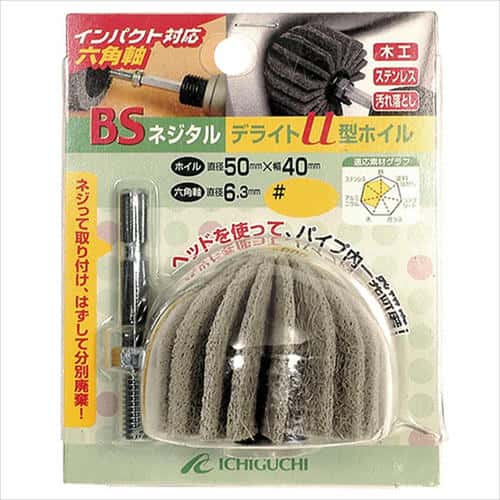 特殊繊維に砥粒をガンシンさせていますから、カンタンにツヤ出しができます。U型形状のため、パイプ内、コーナー、底面研磨に適しています。ドリルに軸を付けたまま手早く交換出来ます。