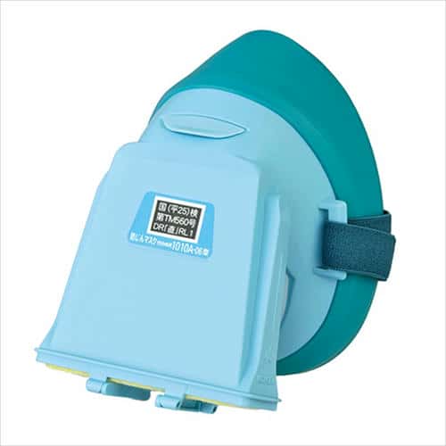 防じんマスク区分RL1です。フィットチェッカーが内蔵されていて、いつでも密着性の確認ができます。