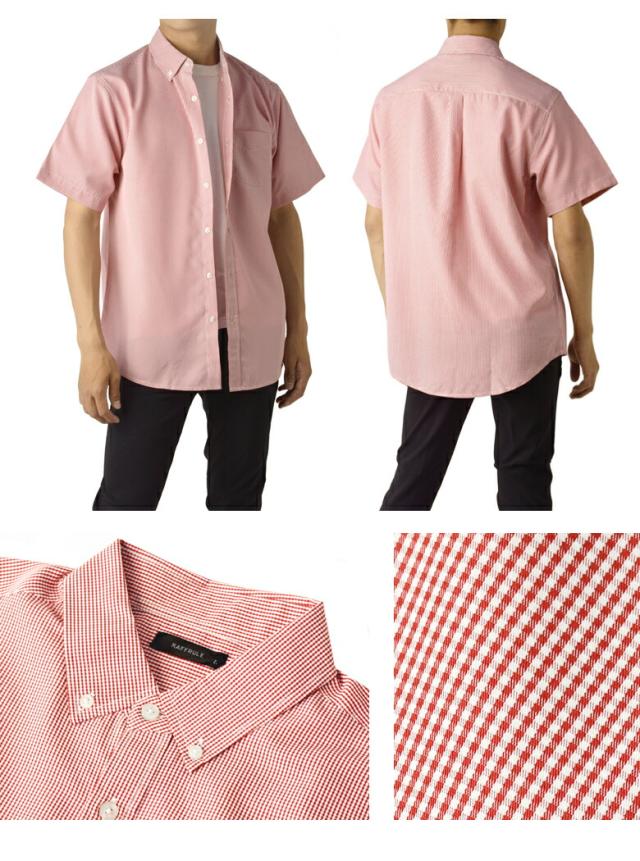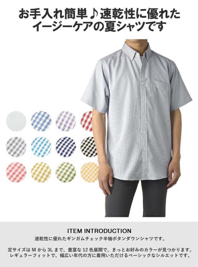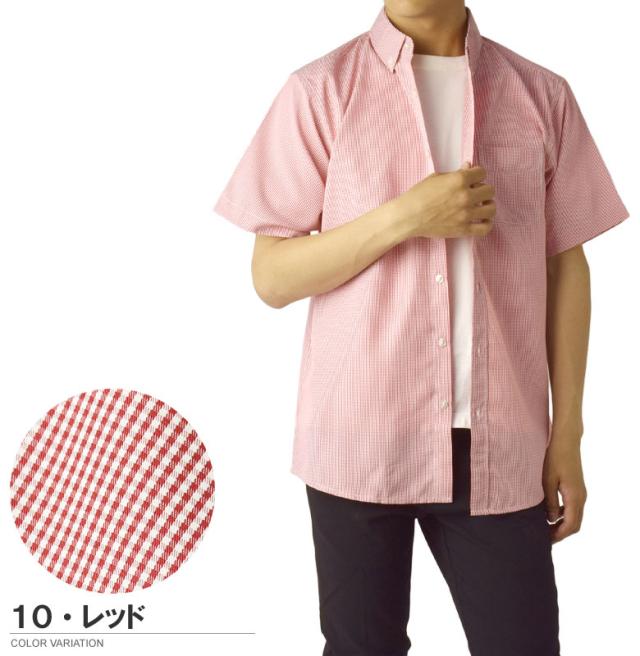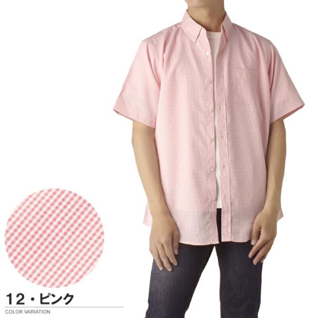 シャツ 半袖 メンズ ギンガムチェック ボタンダウン イージーケア ビジネス カジュアル クールビズ 30代 40代 50代 きれいめ シンプル ベーシック【C2J】【パケ2】