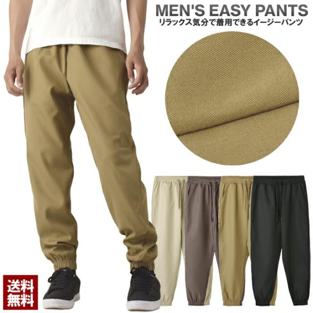 ポイント10%★メンズ リラックスイージーパンツ ジョガーパンツ ポリエステルツイル ボトムス 紳士 男性 ウエスト伸縮 裾上げ不要【C7X】【パケ1】