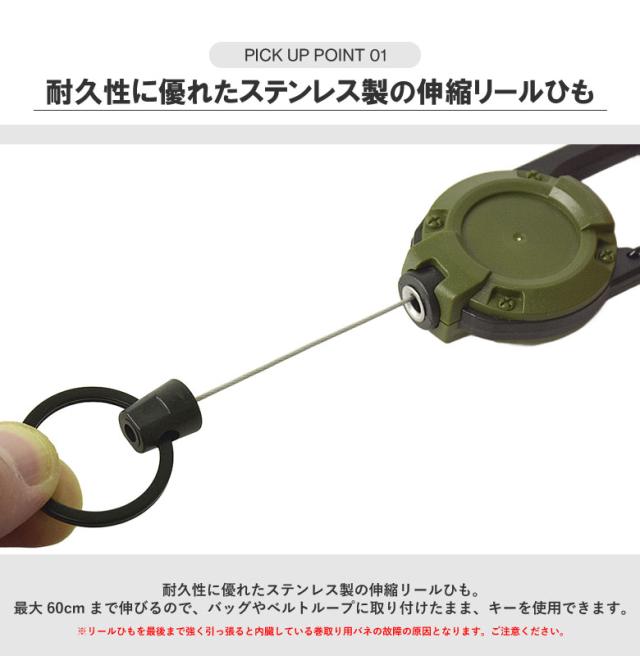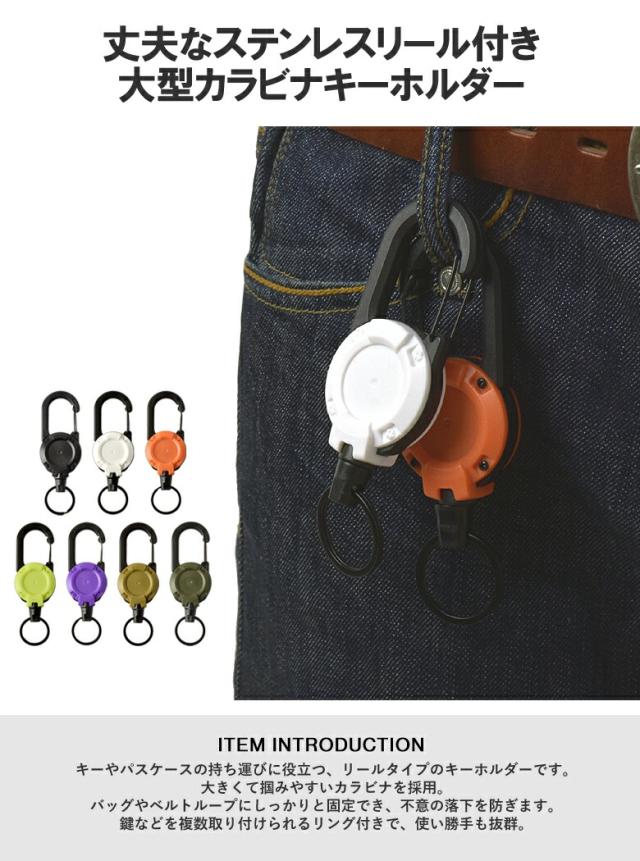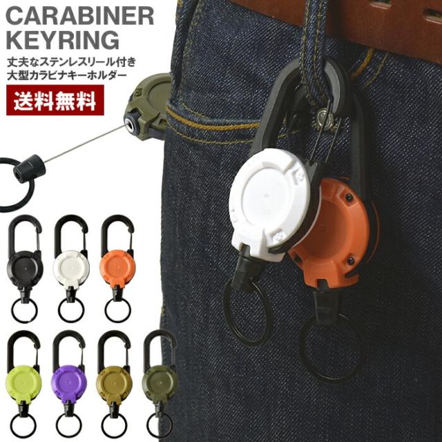 カラビナ 大型 キーリング付き 便利 グッズ メンズ レディース 高耐久 ステンレスリール 伸びる キーホルダー バッグ 鍵【Z1W】【パケ5】