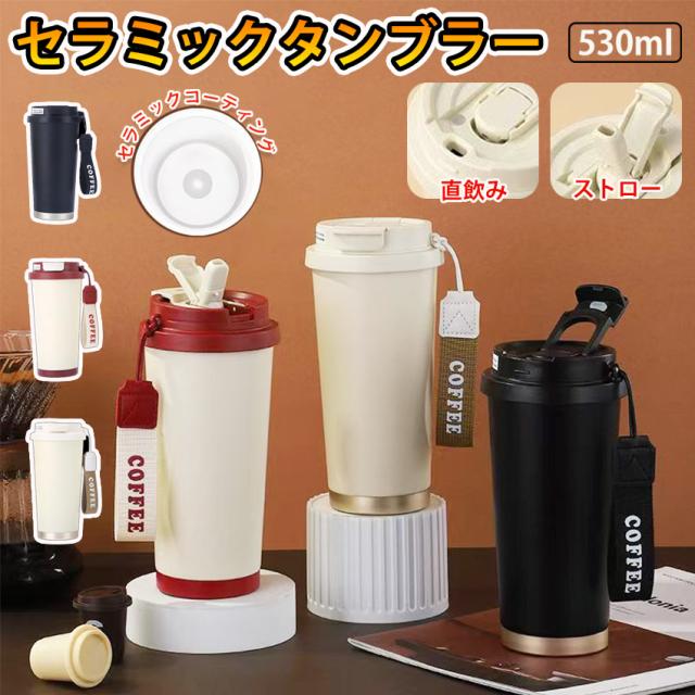 タンブラー 蓋つき セラミック 持ち運び ストロー セラミックコーティング セラミックコート 牛乳 コーヒー 保温 保冷 水筒 マグ ボトル おしゃれ 蓋付き こぼれない