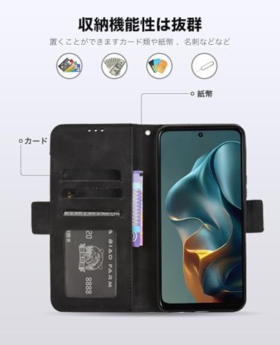 Motorola moto g05 ケース 手帳型 スマホケース 手作り PUレザー 携帯カバー 財布型 ハンドストラップ付 軽量 耐衝撃 耐摩擦 全面保護 手触り良い 滑り落ちにくい 指紋防止 マグネッ式カード収納 スタンド機能 Motorola Moto G05 / E15 4G 対応 (ブラック) ...