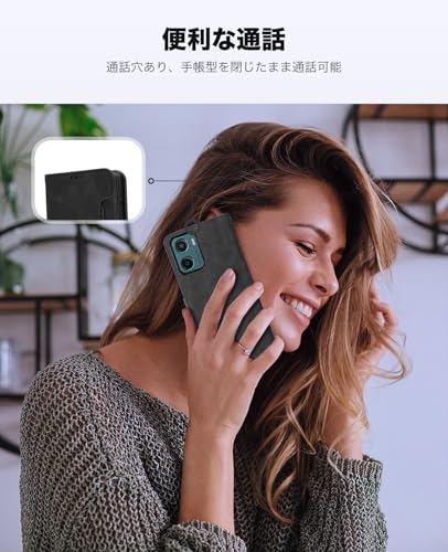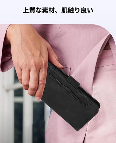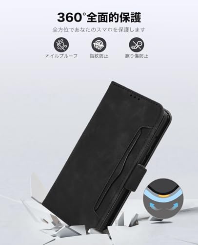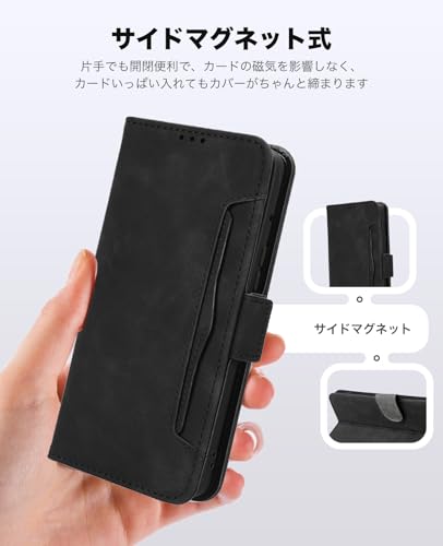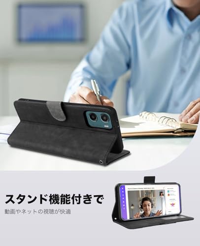 Motorola moto g05 ケース 手帳型 スマホケース 手作り PUレザー 携帯カバー 財布型 ハンドストラップ付 軽量 耐衝撃 耐摩擦 全面保護 手触り良い 滑り落ちにくい 指紋防止 マグネッ式カード収納 スタンド機能 Motorola Moto G05 / E15 4G 対応 (ブラック)