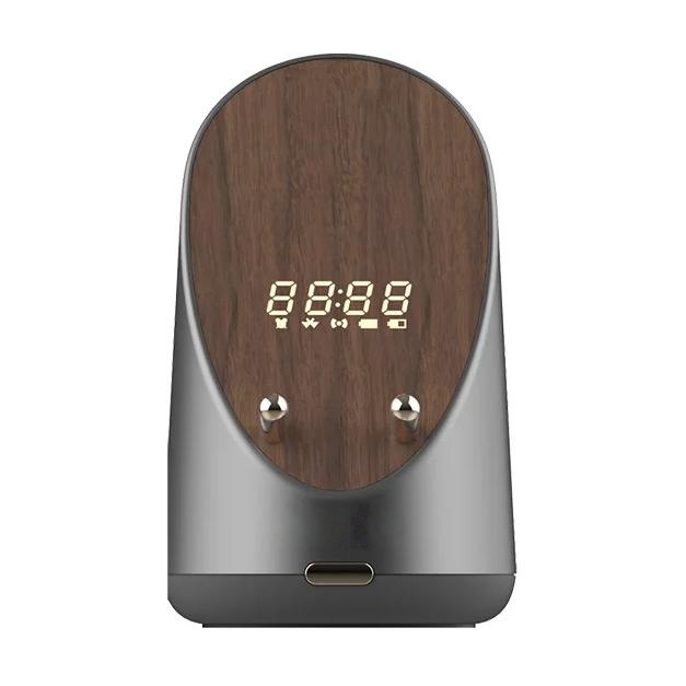 スマホスタンド ワイヤレス充電 多機能充電器 卓上時計デジタル時計 目覚まし時計 スマートフォン インダクタンススピーカー付き非接触充電器 (木目スタイル)