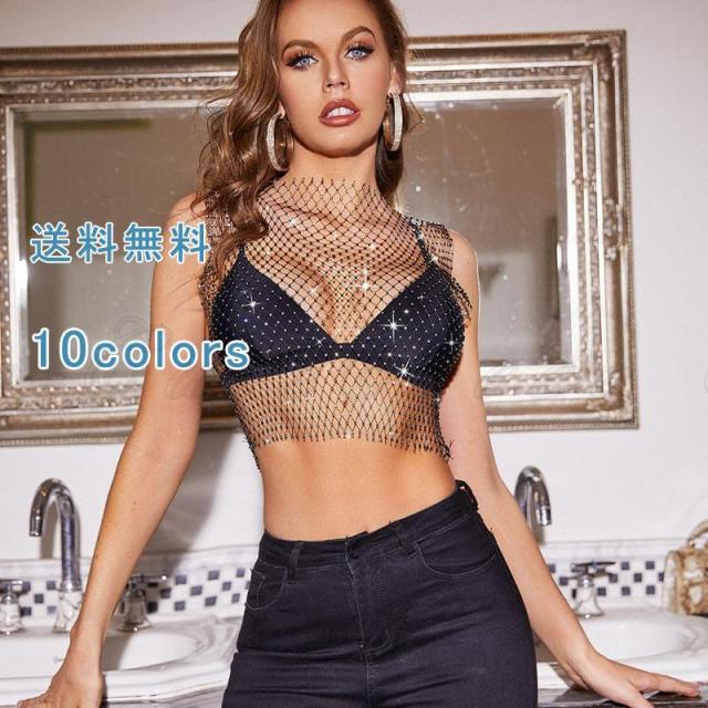 ボディチェーン Tシャツ ダンス衣装 ランジェリー ラインストーン アクセサリー 透かし トップス レディース 派手 コスチューム