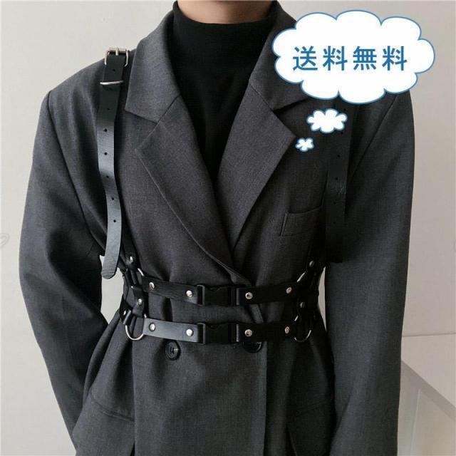 クロスベルト サスペンダー ボディーハーネス コスチューム小物 ウエストベルト 吊りバンド PU チェスターコート レディース カジュアル お洒落