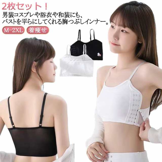 | 2枚セット! 男装コスプレや浴衣や和装にも、バストを平らにしてくれる胸つぶしインナー。 細い肩紐なので長時間着用でも苦しくない!通気性に優れた素材を使用。 胸をしっかりと覆ってスッキリ収納してくれます。 | |