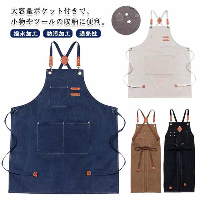 撥水加工 レディース 家庭用 メンズ デニム 男女兼用 エプロン 無地 飲食店 長めストラップ 防汚加工 通気性 エプロン キッチン 作業用 カフェエプロン 大容量ポケット 仕事用 ガーデニング DIY 保育士 前掛け シンプル