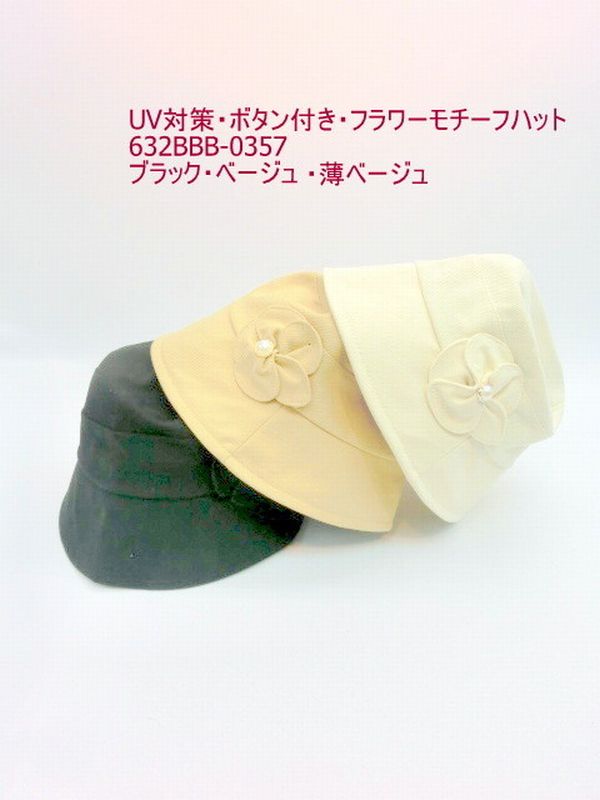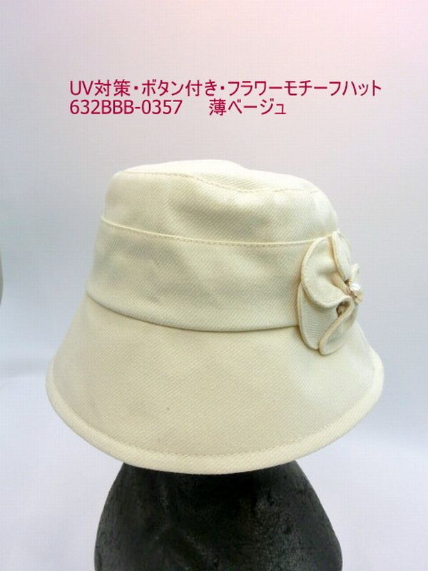 ハット つば広帽子 帽子 ファッション小物 レディースファッション UV対策 ボタン付き フラワーモチーフ 小さめSサイズ 目を惹く 【送料無料】