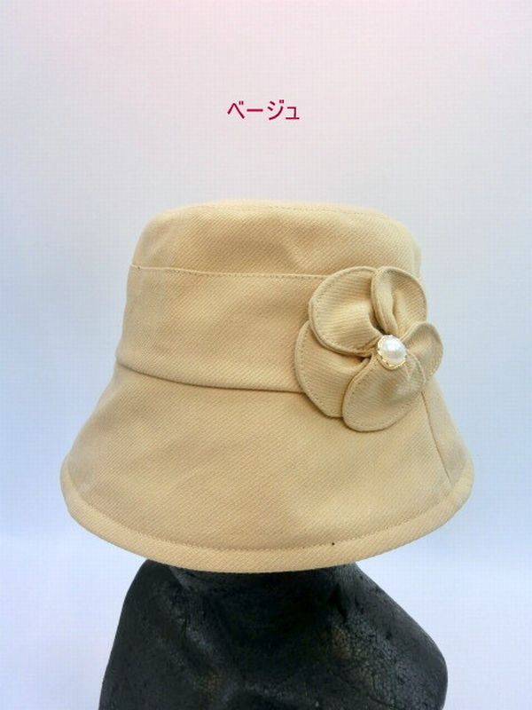 小さめのSサイズ、ボタン付きのフラワーモチーフが目を惹くフェミニンなハットです。コーディネートしやすく、洋服に合わせやすいシンプルなカラー展開。