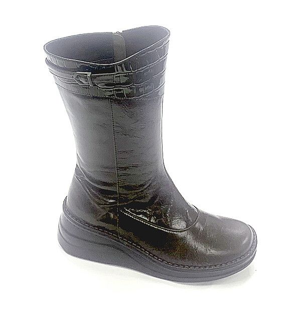 ブーツ レディースシューズ レディースファッション 靴 クロコ調 エナメル コンビ ミドルブーツ 【送料無料】