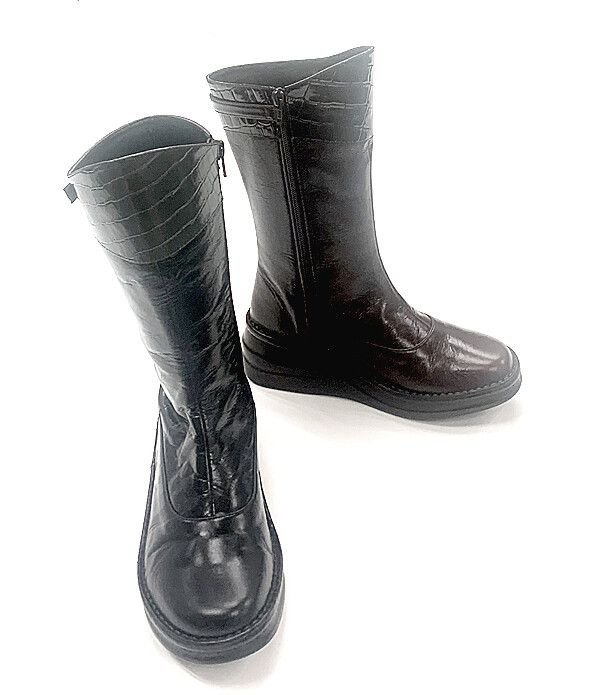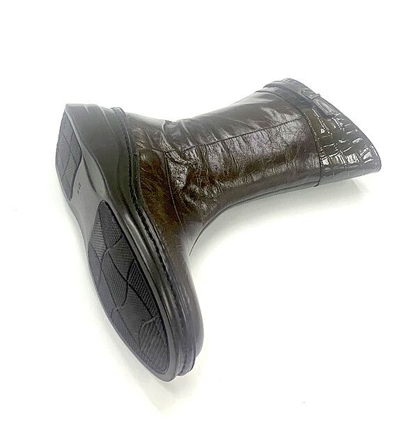 | 22.0cm〜24.5cm 踵高:約5cm 筒丈:踵部分から22.7cm(計測サイズ23.0cm) 筒回り:33?(計測サイズ23.0cm) 底最大幅:約10cm ※当商品はご注文を頂いた時点で商品を仕上げますので、サイズ変更等の対応はできません。 ご注意くださいますようよろしくお願いいたします。 |