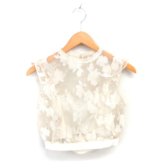 【中古】スナイデル SNIDEL ブラウス カットソー レース オパールフラワー シアー ノースリーブ 1 ライトベージュ