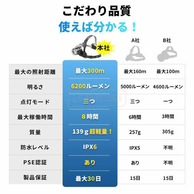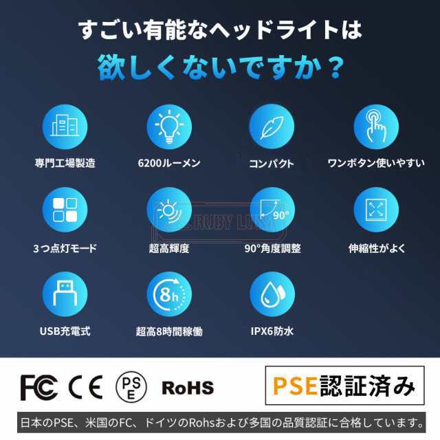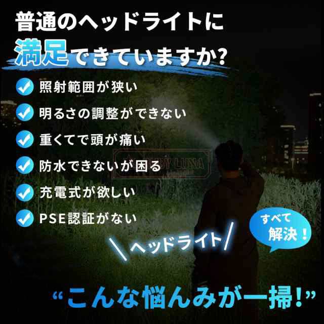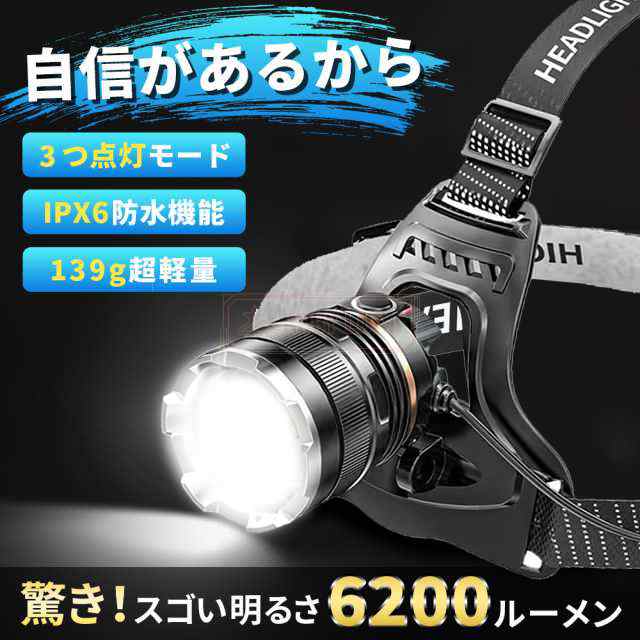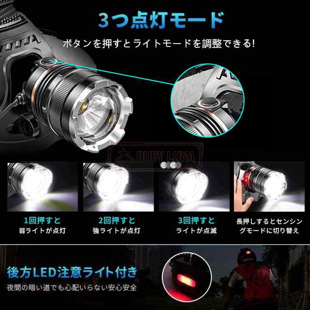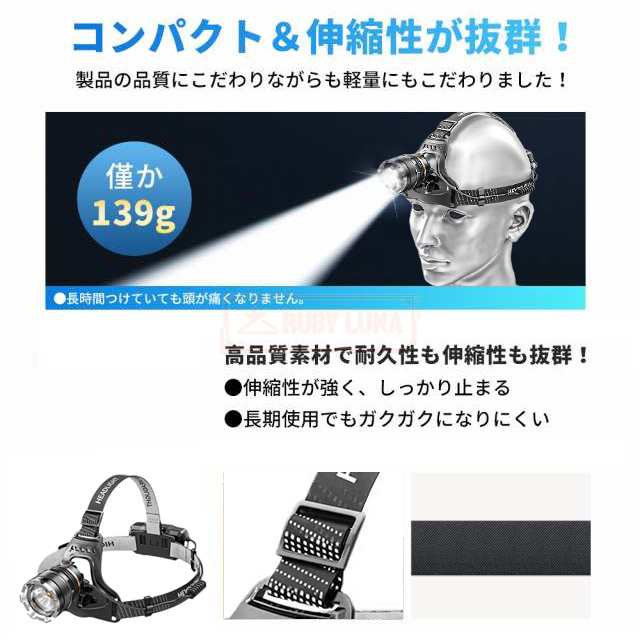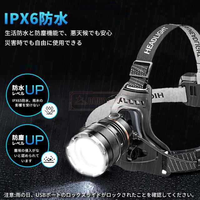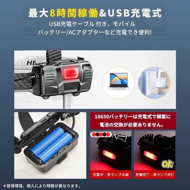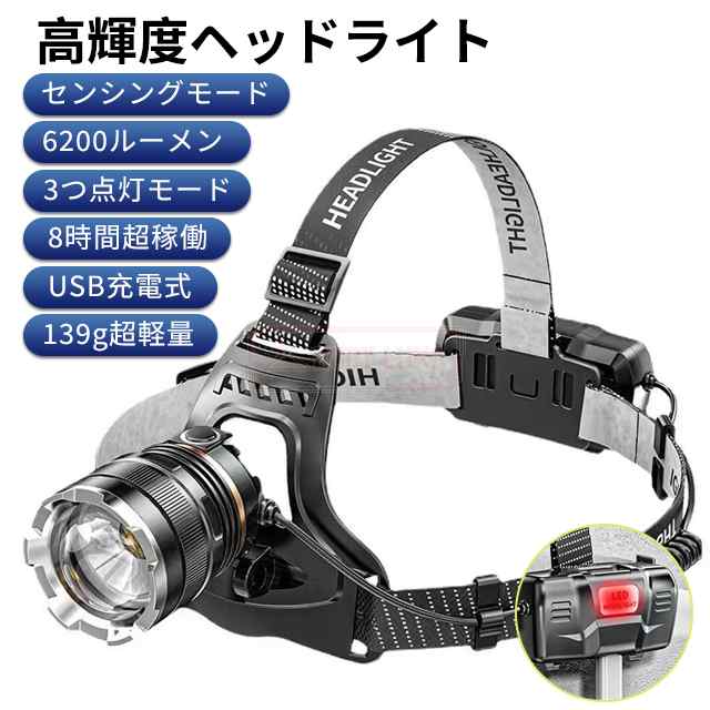 ヘッドライト LEDヘッドライト 高輝度 充電式 軽量 防水 防塵 停電対策 登山 釣り キャンプ アウトドア用 ランニング 夜間 明るい コンパクト 長時間点灯 ヘッドランプ 地震対策 災害対策