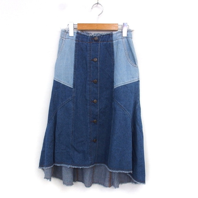 【中古】レディアゼル REDYAZEL デニム フリンジ フレア スカート ロング フィッシュテール バックジップ S 青 ブルー