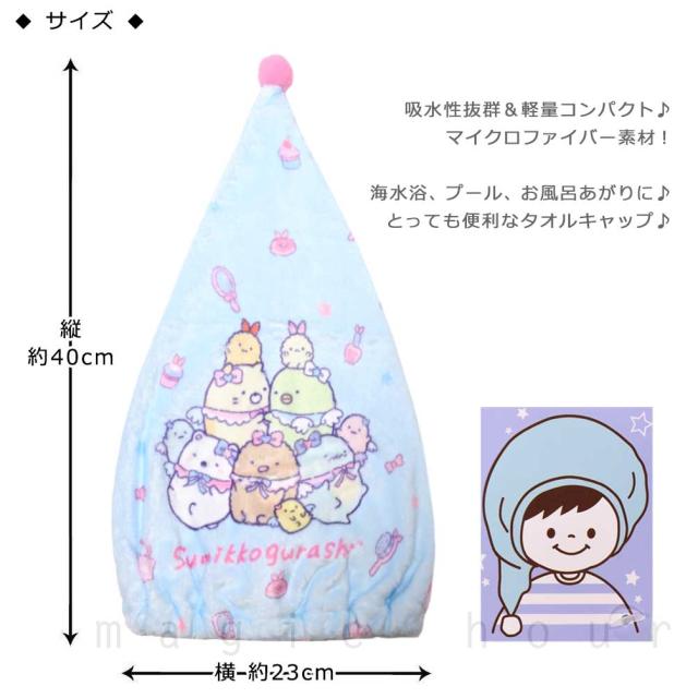 送料無料 プール キャップ タオルキャップ タオル 帽子 子供 吸水 スポーツ キッズ 女の子 水泳 子ども スイミング すみっコぐらし サンリオ かわいい 青