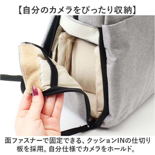 | 商品説明 | 【カメラも荷物もまるっとひとまとめ】 ・両手があくハンズフリーで快適に♪「カメラバッグ リュックサック」が登場。 【PCや他の荷物も収納できる】 ・カメラ収納はもちろん、PCや他の手荷物も収納できる優れモノ。お出かけはこれ1つでOK! 【独立カメラルームを採用】 ・他の荷物とカメラを分けてしまえる、独立型。サイドからも引き出せるBOX仕様で使いやすい。 【持ち運びも安心の衝撃吸収】 ・カメラ収納とPC専用ポケットは、クッション入りの作りで外からの衝撃を吸収してくれる◎ 【自分のカメラをぴったり収納】 ・面ファスナーで固定できる、クッションINの仕切り板を採用。自分仕様でカメラをホールド。 【突然の雨でも慌てない!】 ・撥水加工を施した外生地と専用カバーつき。雨からカメラを保護!※完全防水ではありません。 【三脚収納もできる!】 ・バッグ底には、三脚をはさめるベルトを搭載。アイテムに合わせて長さ調節可能。 【ポケット仕様】 ・フロント:ファスナーポケット×1 ・サイド:オープンポケット×2(外側と内側に1つずつ) ・メイン:PCポケット×1、オープンポケット×3 ・背面:ファスナーポケット×1 |