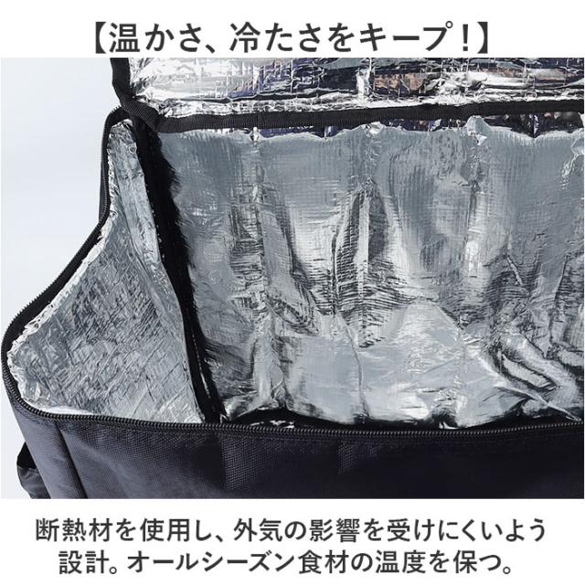 | 商品説明 | 【レジャーや買い物、配達のお仕事に】 ・たっぷり入って、しっかり温度をキープ!「デリバリーバッグ 配達用バッグ」が登場。 【温かさ、冷たさをキープ!】 ・断熱材を使用し、外気の影響を受けにくいよう設計。オールシーズン食材の温度を保つ。 【雨にも負けない撥水生地】 ・水滴をはじく、撥水生地を採用。突然の雨でも慌てなくてOK!※完全防水ではありません。 【ガバっと開くダブルファスナー】 ・左右どちらからも、ぐるっとオープン!底までしっかり確認しやすく、整理整頓できる。 【ちょうどよい大容量サイズ】 ・大きなペットボトルを立てて入れられる。たっぷり入るけど大きすぎないサイズ感◎ 【夜間も安心のリフレクター】 ・悪天や夜間の移動も安心の反射板つき。レジャーや夜道でもピカッと目立つ、うれしい作り。 【ポケット充実で使いやすい】 ・外側のファスナーポケットとサイドポケットで、小物の収納もラクラク。ミニ栓抜きを搭載! 【持ち歩きも快適に】 ・背面と肩ストラップに、メッシュ素材とクッションをIN。長時間の持ち歩きの負担を軽減する。 【いろんなシーンで大活躍!】 ・食材のまとめ買いはもちろん、キャンプなどのレジャー、配達などのお仕事にもぴったり! 【ポケット仕様】 ・前面:オープンポケット×1 ・サイド:オープンポケット×2(アジャスターつき) ・フタ部分:クリアポケット×1 |