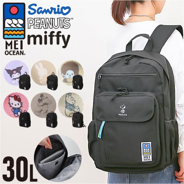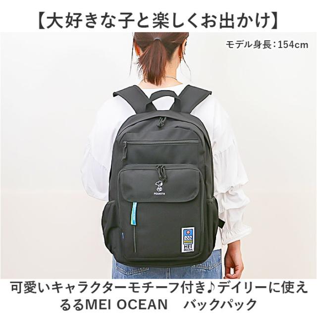 MEI OCEAN リュック メイオーシャン 6206 通販 リュックサック バックパック デイパック レディース メンズ 大人 女子 通学 通勤 黒 ブラック 大容量 A4 中学生 高校生 大学生 おしゃれ 部活 旅行 キャラクター かわいい レディースバッグ