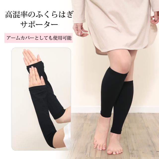 日本製 綿高混率 2WAY ふくらはぎ用サポーター アームカバー レディース UVカット UV 紫外線 カット ブラック 黒 紫外線対策グッズ ドライブ グローブ 日焼け対策 ふくらはぎ サポーター あたたかい グッズ 自転車 通勤 通学 OL 大人 女性 春 秋 1000円 ぽっきり 送料無料