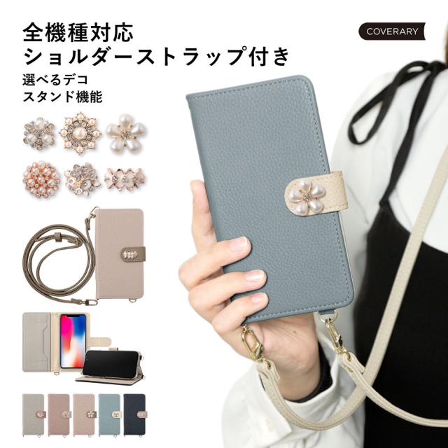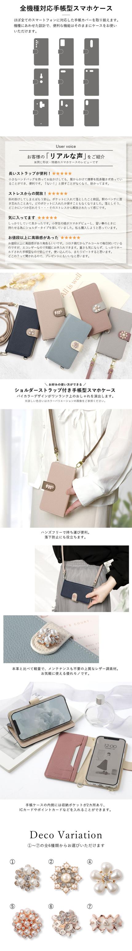ショルダータイプの手帳型ケース全5色×ワンポイントデコ6種