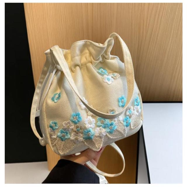 | 浴衣など和装スタイルにぴったりの花柄刺繍巾着バック。 キャンバス生地に刺繍のお花があしらわれた2wayバッグです。 手提げ、肩掛け、斜めがけとシーンに合わせて3wayで、お出かけ時に便利です。 程よいサイズ感でスマホ・ハンカチ・リップ・小さめのお財布など必要最低限の荷物が入ります。 日常使いはもちろん、浴衣や袴などの和装着物でのお出かけの際にも似合うデザイン。 | |