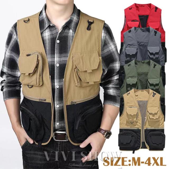 メンズ メッシュ 多機能ベスト ゴルフベスト 釣りベスト 春夏 作業着 農業 仕事 登山 キャンプ ミリタリー 撮影用