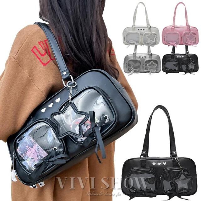 痛バッグ トートバッグ 推し活 オタ活 バッチ 大きめ おしゃれ クリアポケット 可愛い