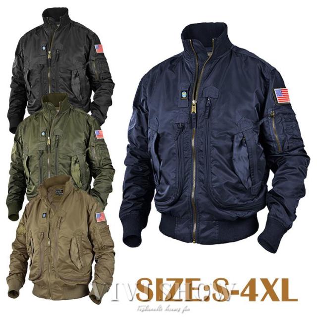 USフラッグ付き メンズ ミリタリースタイル MA-1 フライトジャケットカジュアルジャケットバイクジャケット