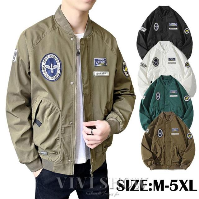 フライトジャケット メンズ トップコート ワッペン付き スタイリッシュ ミリタリー デザイン MA-1ジャケット ポイント利用