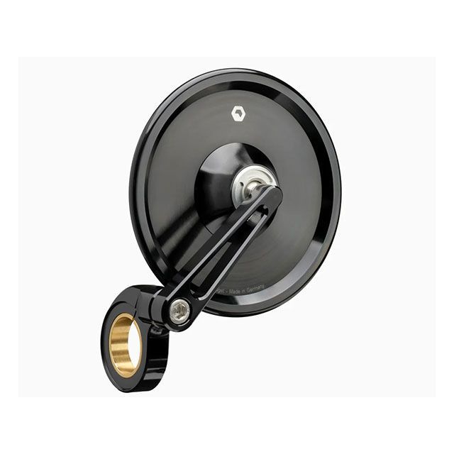 mo.view classic 60は、motogadget(モトガジェット)が開発した革新的なバーエンドミラーです。クラシカルなラウンドフォルムと超薄型のガラスレス構造により、カフェレーサーやクラシックバイクに最適なヴィンテージスタイルを演出します。ミラー面には従来のガラスを使用せず、アルミ素材そのものを鏡面化する独自技術を採用。これにより、フレームレスの洗練されたデザインと、耐久性に優れたクリアな視界を実現しました。ハンドル上にも下にも取り付け可能な汎用性を備え、22mmおよび1インチ径のハンドルバーに対応。高精度CNC加工によるアルミ削り出しボディとステンレス製ボルトを組み合わせ、耐候性と堅牢性も申し分ありません。カフェレーサーカスタムやクラシックバイクのスタイルをさらに引き立てる、最高品質のバーエンドミラーです。