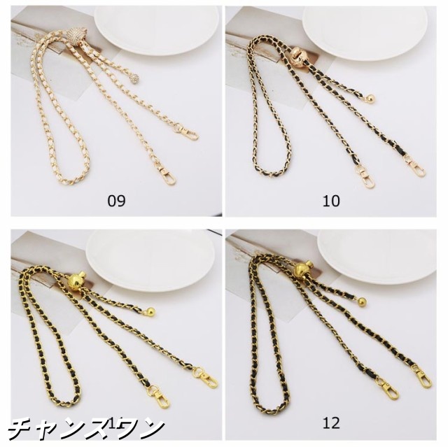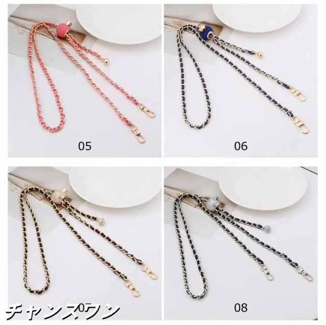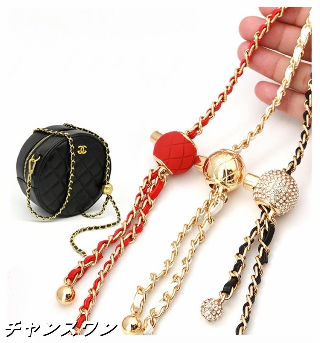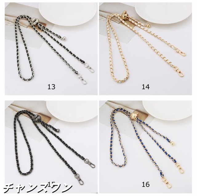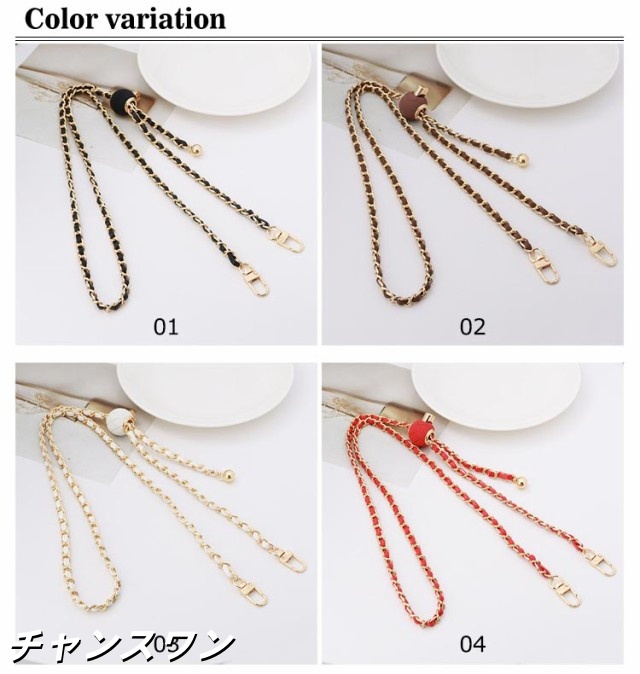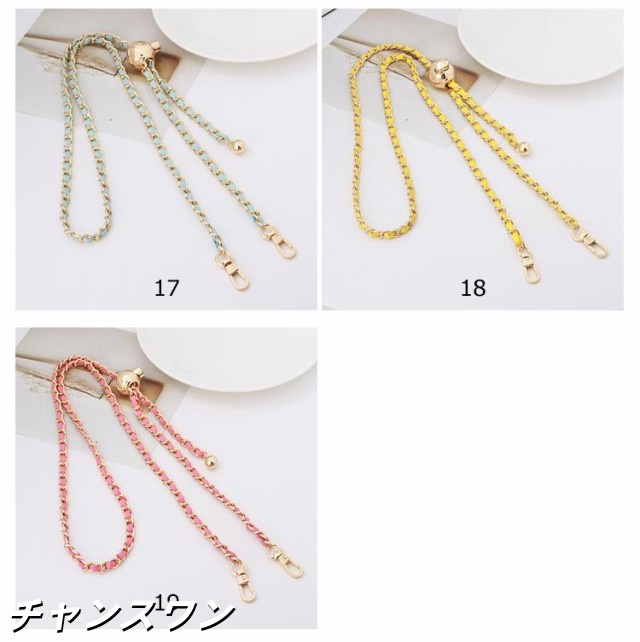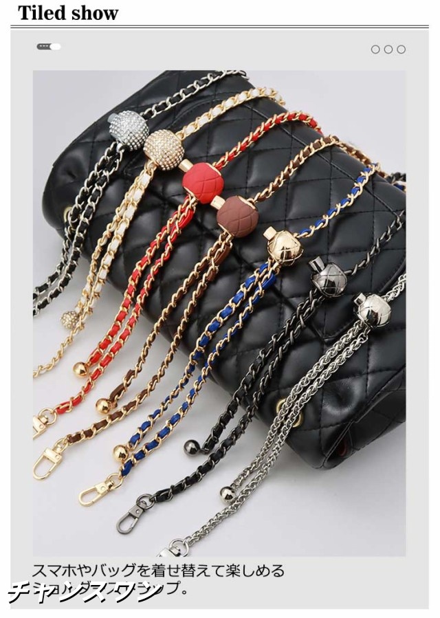 | 19色 120cm(調節可能) 付け替え用 チェーンストラップ スマホやバッグを着せ替えて楽しめるショルダーストラップ チェーンの間にPUレザーを編み込んだお洒落で華やかなストラップ。 カジュアルにもキレイめにもこれ一つでいつものコーディネートを ワンランクアップさせてくれます。 | |