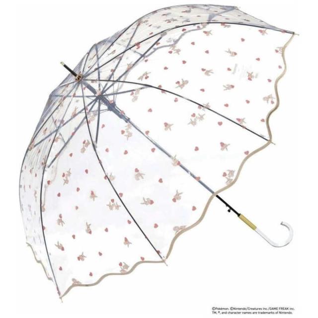 ポケモンとハートが散りばめられた可愛らしいデザインのビニール傘。