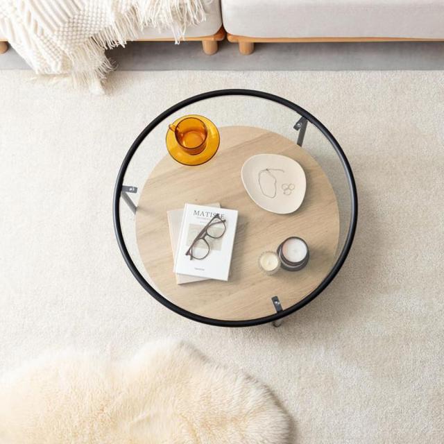 異素材ミックスの美しさが際立つ、ガラス天板センターテーブル。