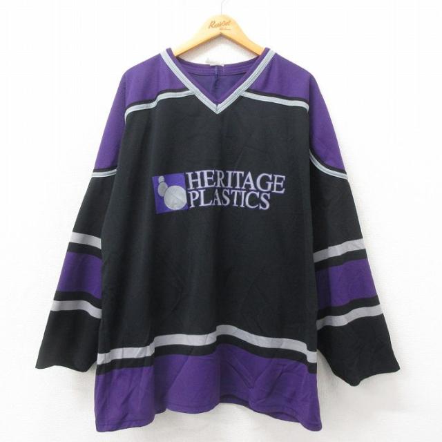 古着 長袖 ビンテージ Tシャツ アイスホッケー ジャージ メンズ 00年代 00s ヘリテージ 大きいサイズ ロング丈 メッシュ地 Vネ 中古 古着