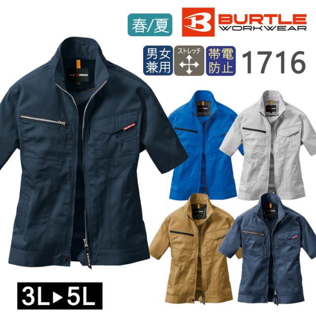 大きいサイズ ジャケット 春夏 半袖 ブルゾン バートル BURTLE ユニセックス 1716 制電 JIS ワークウェア 男女兼用 かっこいい おしゃれ レディース メンズ