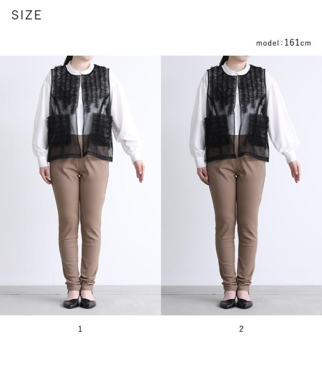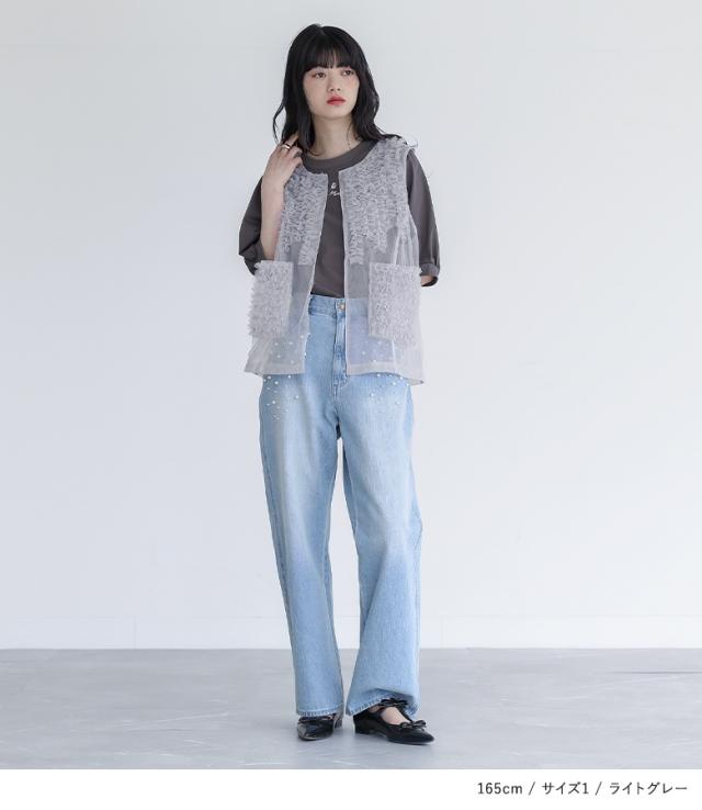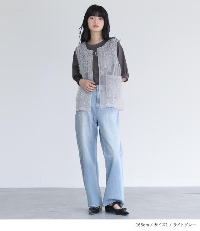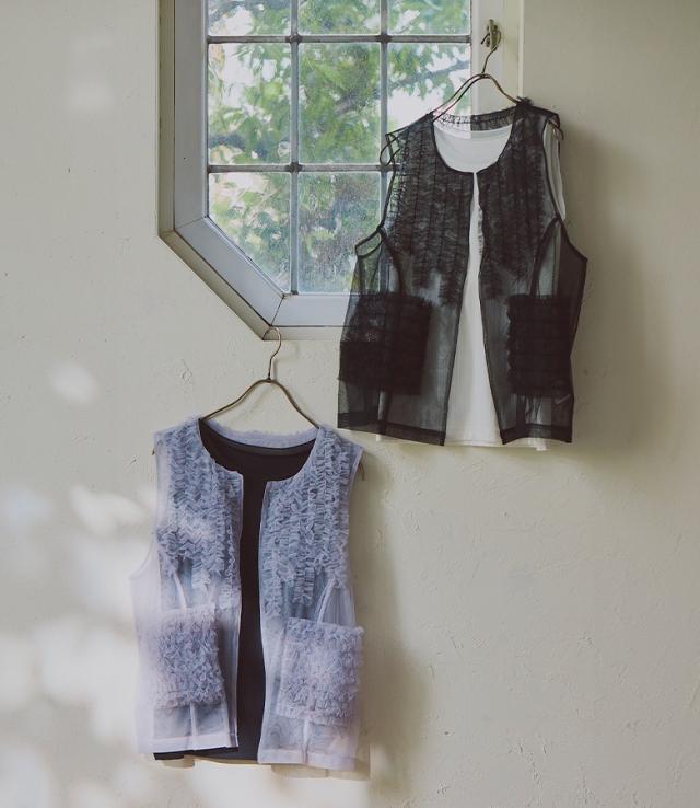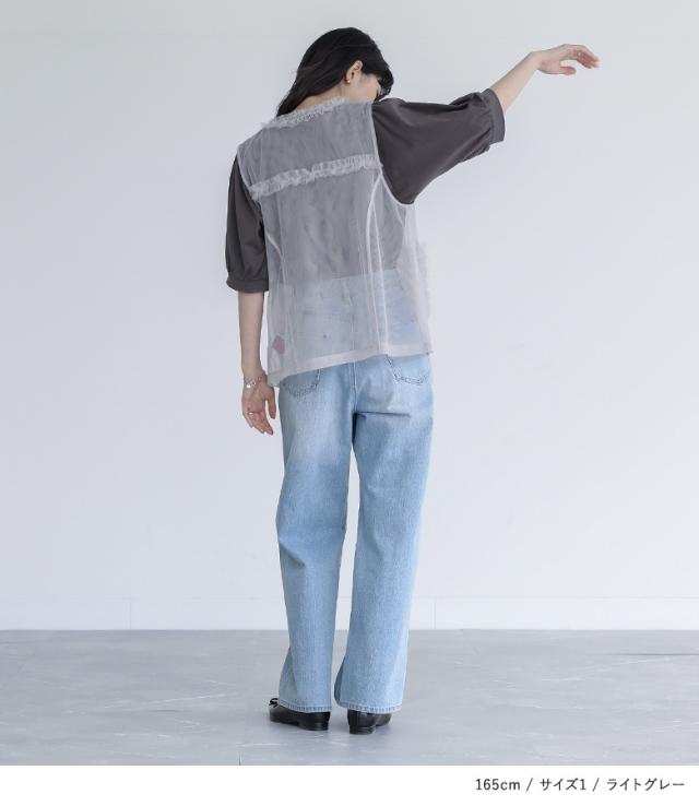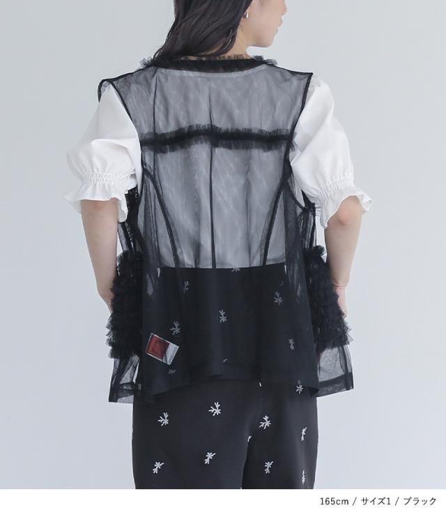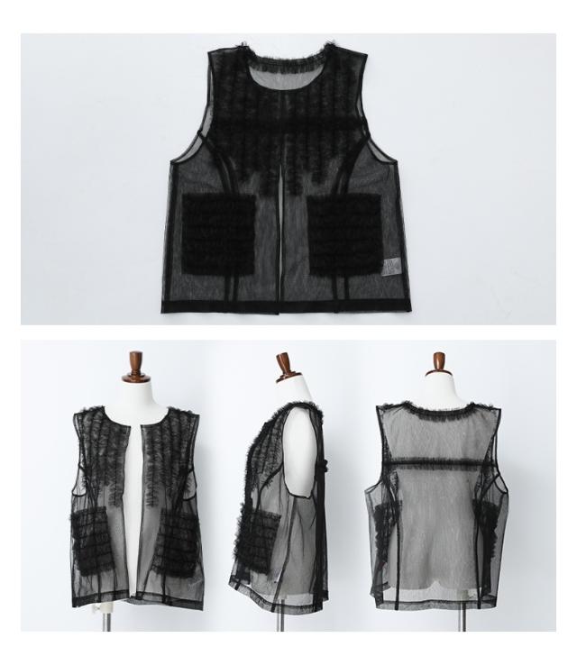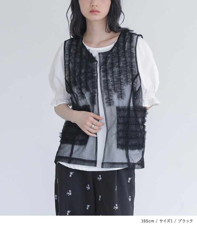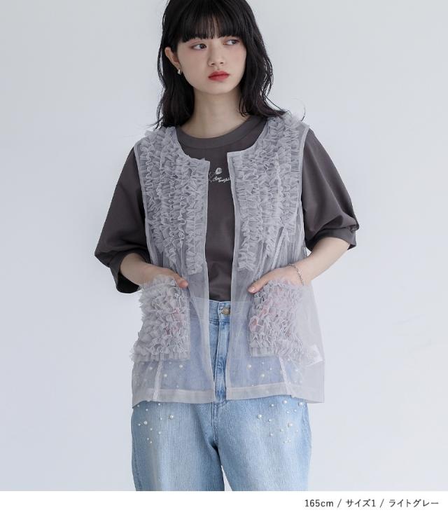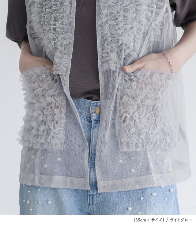 『チュールフリルベスト』※メール便可※【10】[ベスト レディース トップス ジレ チュール フリル シアー 透け感 羽織 ポケット レイヤード 重ね着 春 夏]