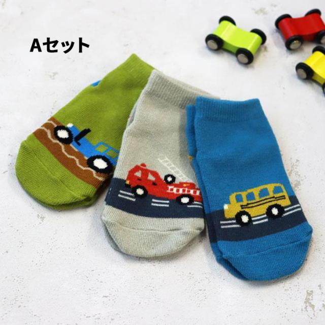 スタンプル キッズ 3足組 靴下 13-18cm stample 長い乗りもの アンクルソックス 3P 園児サイズ 子ども くつ下 くつした 滑り止め キッズソックス 子供服 消防車 バス くるま 子供靴下 保育園 幼稚園 通園 かわいい ブランド アパレル プレゼント ギフト/73136