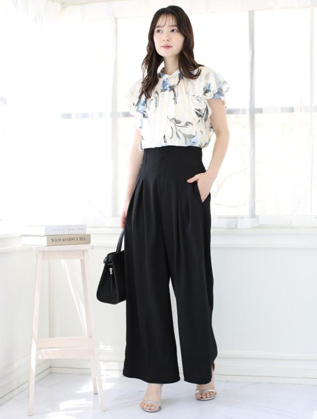ポケット付ハイウエストスラックスパンツ