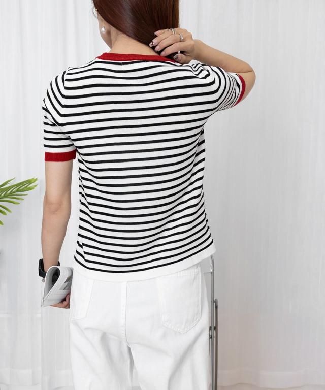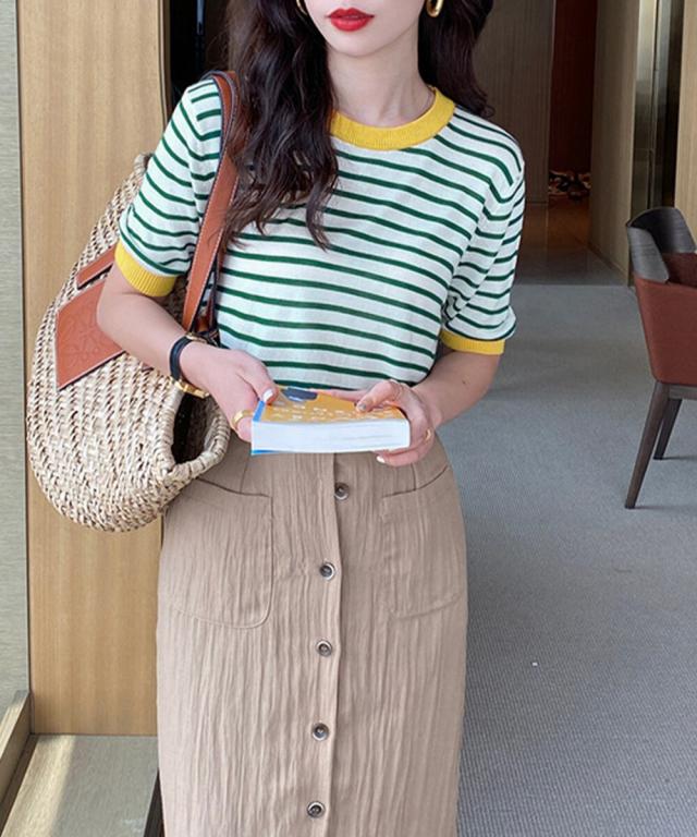 ボーダーニットトップス 半袖 レディース