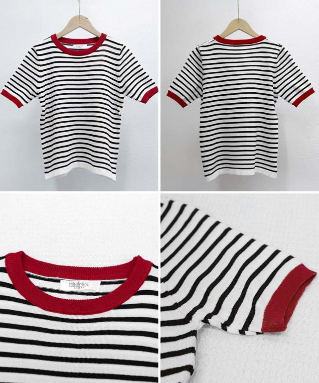 ミニミニストア(miniministore)/ボーダーニットトップス 半袖 レディース