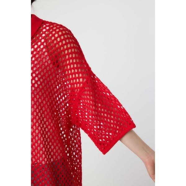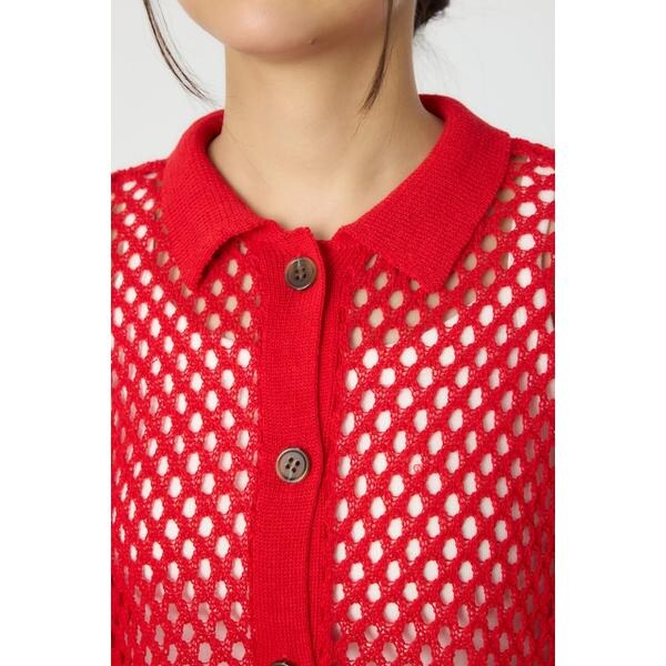 ■ポイント涼やかな編地に襟付きデザインが大人カジュアルなカーディガン。■ディティール肌触りの良い生地感もこれからの季節大活躍間違いなしです。■スタイリング透け感を活かして、キャミソールにさらっと羽織ると、ヘルシーな印象に。ボトムは、ブランドらしく王道なデニムと合わせるのがおすすめ。■生地TC素材のメッシュ編みで軽く、伸縮性に富んでいます。肌触りがドライで涼し気な素材です。編地の特性上、引っ掛かりやすくなっています。洗濯後に形を整える必要があります。■透け感:あり■光沢感:なし■伸縮性:あり■裏 地:なし[注意事項]※画像の商品はサンプルです。実際の商品と仕様、加工が若干異なる場合があります。※画像の商品は光の照射や角度、お使いのモニター環境により、実物と色味が異なる場合がございます。※着用、お取り扱いの際は、アテンションタグをご確認ください。