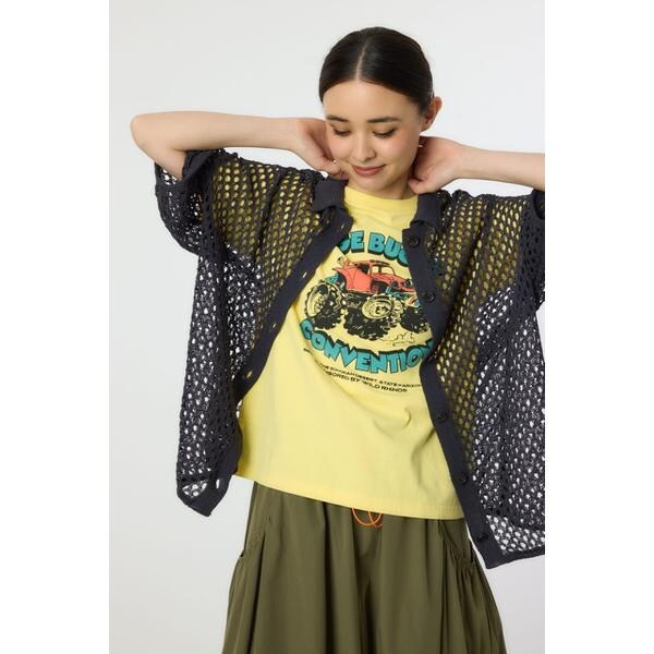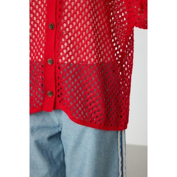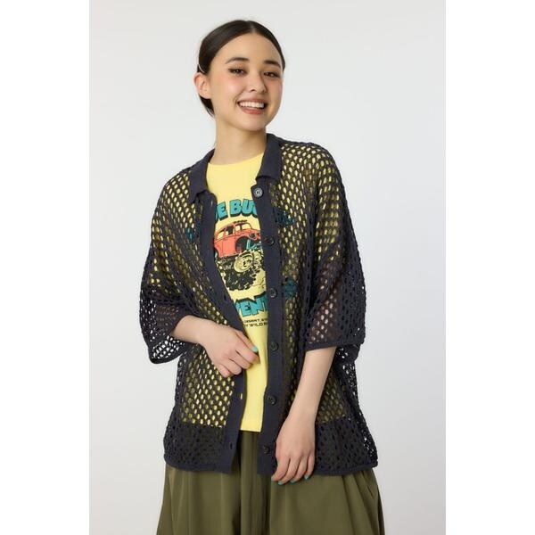 ロデオクラウンズ ワイドボウル(RODEO CROWNS WIDE BOWL)/襟付きメッシュニットカーディガン