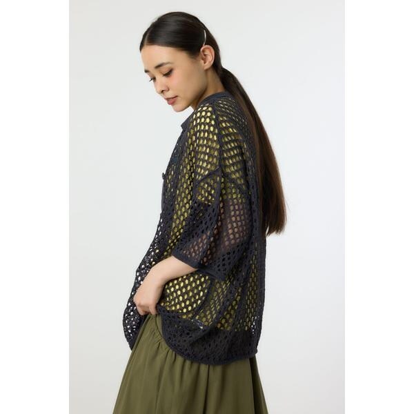 襟付きメッシュニットカーディガン
