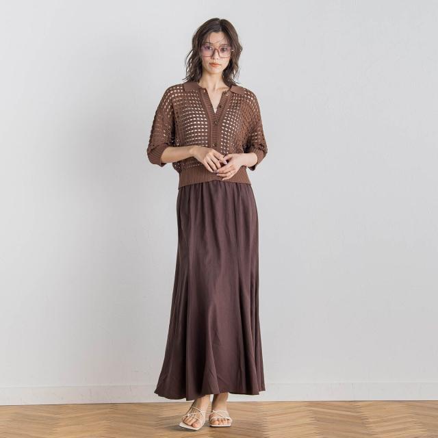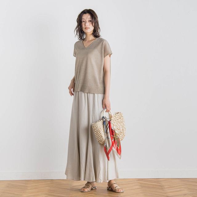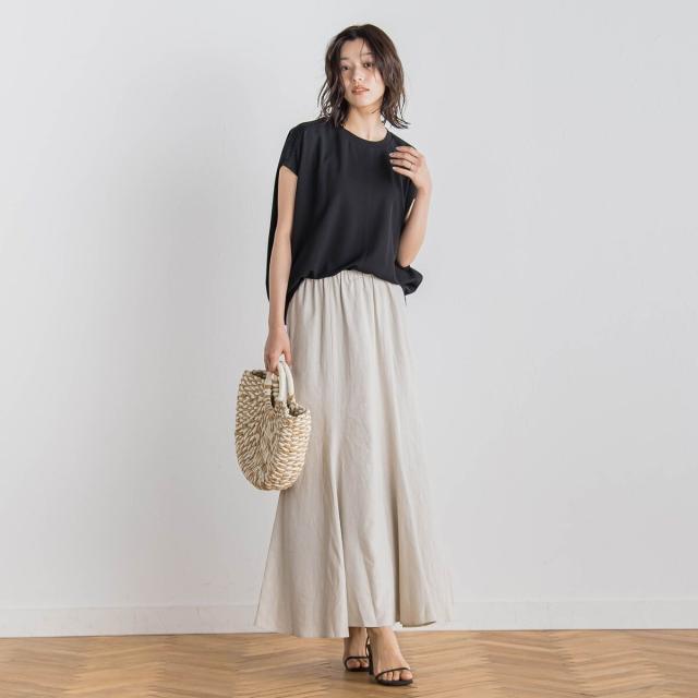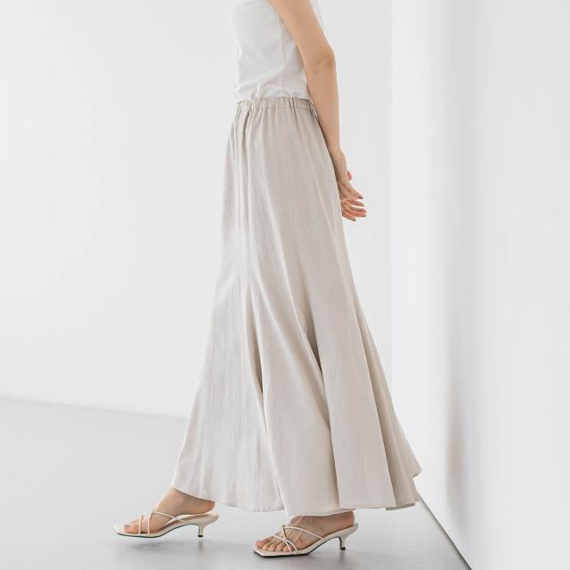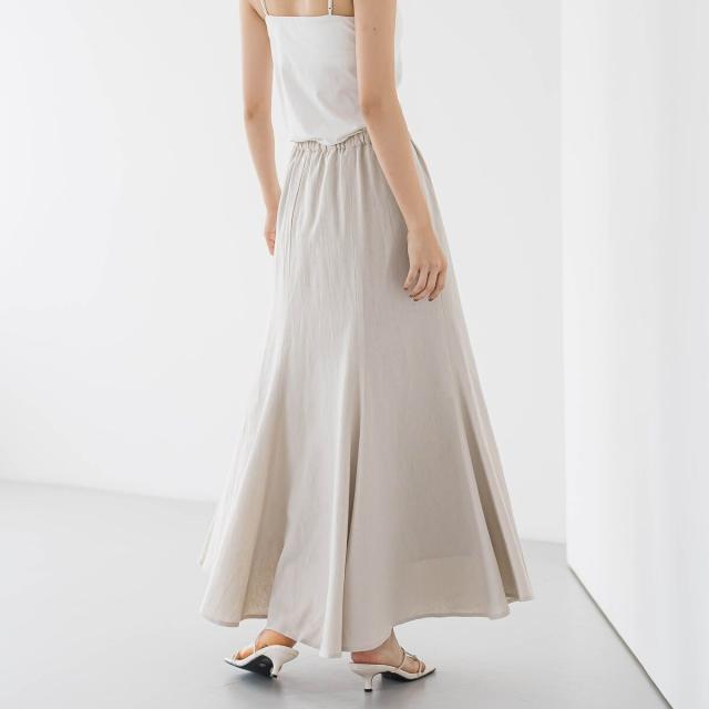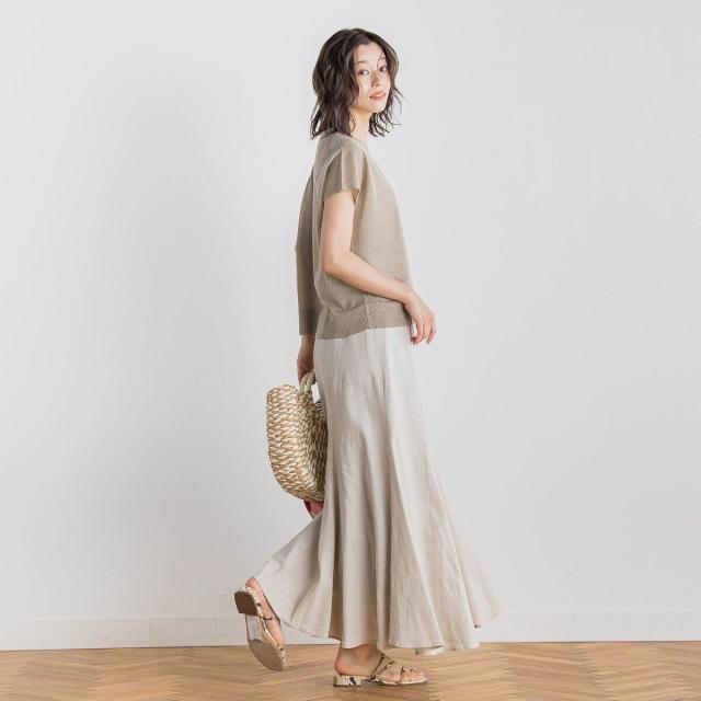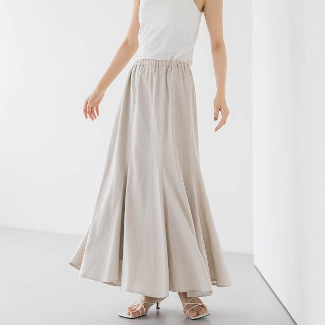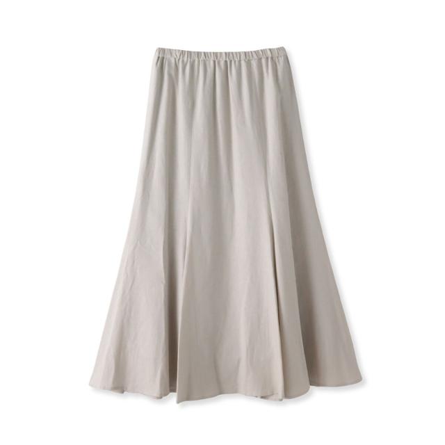 リネンの表情とレーヨン混の光沢がきれいめナチュラルなマーメイドフレアスカート。