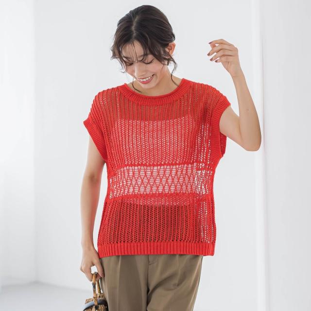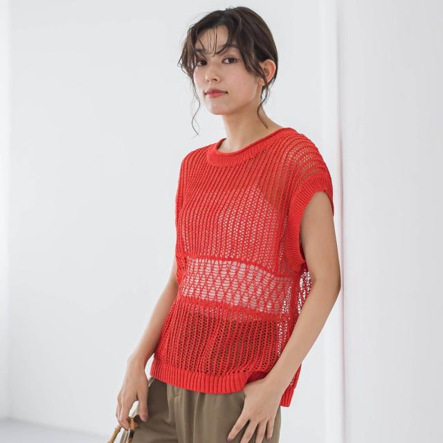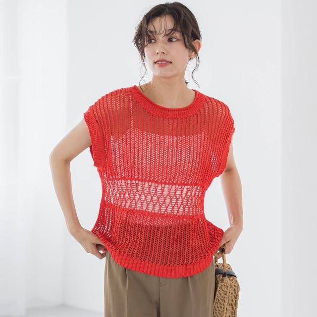 バケーションムード溢れるざっくり感が魅力のメッシュニットプルオーバー。