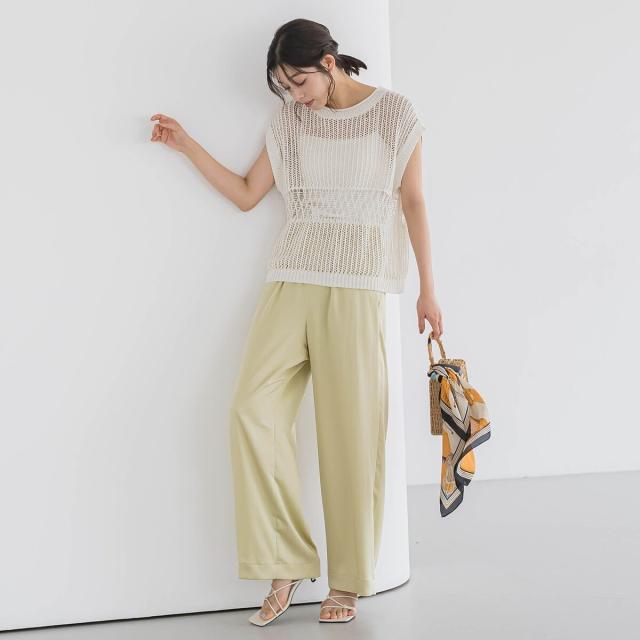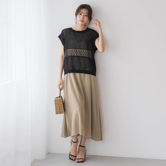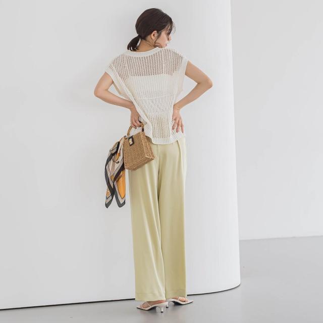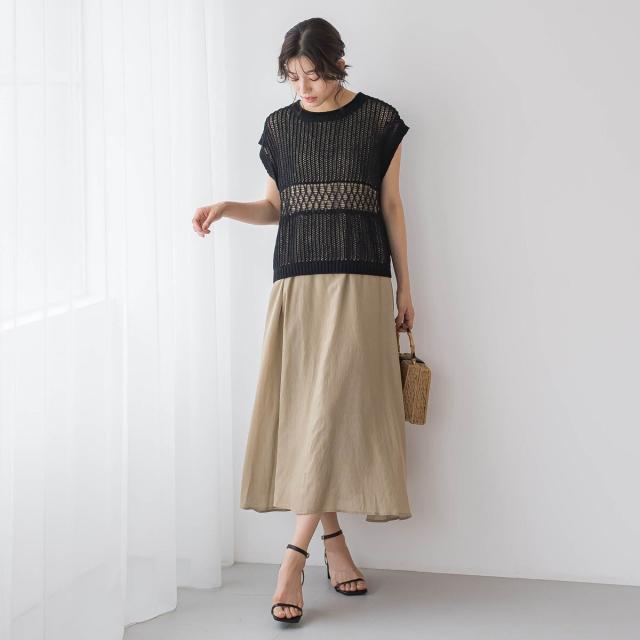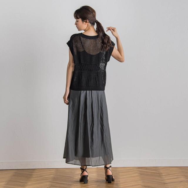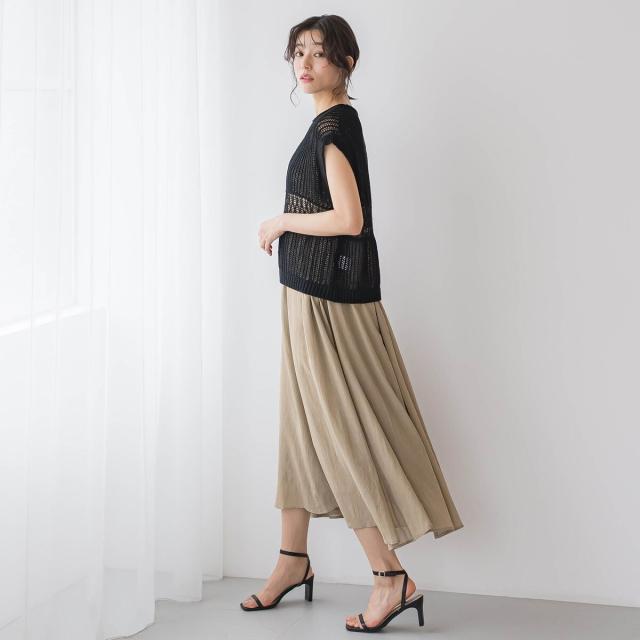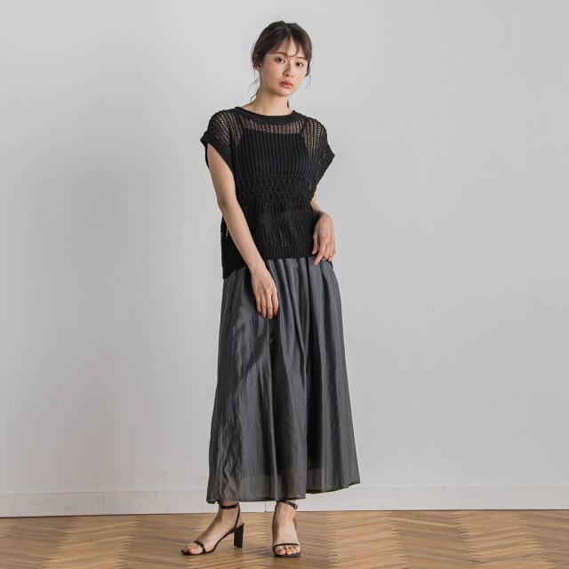 ワイドパンツやスカートにはもちろん、ワンピースに重ねたりとレイヤードスタイルも楽しめます。