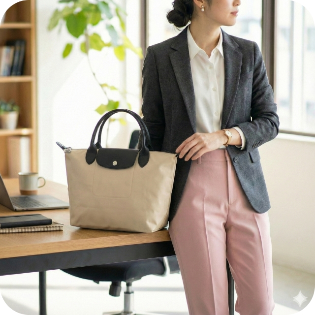 | Lサイズでも扱いやすい実用的容量 約28×32×17cmのLサイズ設計で、長財布・ポーチ・A5書類・タブレットなど日常必需品をしっかり収納。マチが広く荷物の出し入れもしやすいため、通勤・お出かけ・旅行まで幅広く対応する万能トートバッグです。 |